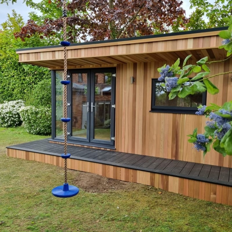 Externally, the Extend Edge Garden Room can be finished in a choice of fibre cement, smooth or woodgrain composite cladding, as well as thermowood or Western Red Cedar timber cladding. This wide range of finishes allows you to tailor the appearance to perfectly complement your garden and surrounding architecture.